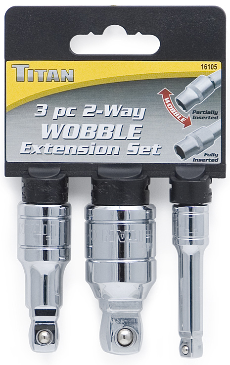 - Includes 3 extensions: 1/4", 3/8", 1/2" drive x 2"