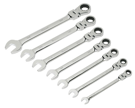 7 pc SAE Flex-Head Ratcheting Combination Wrench Set